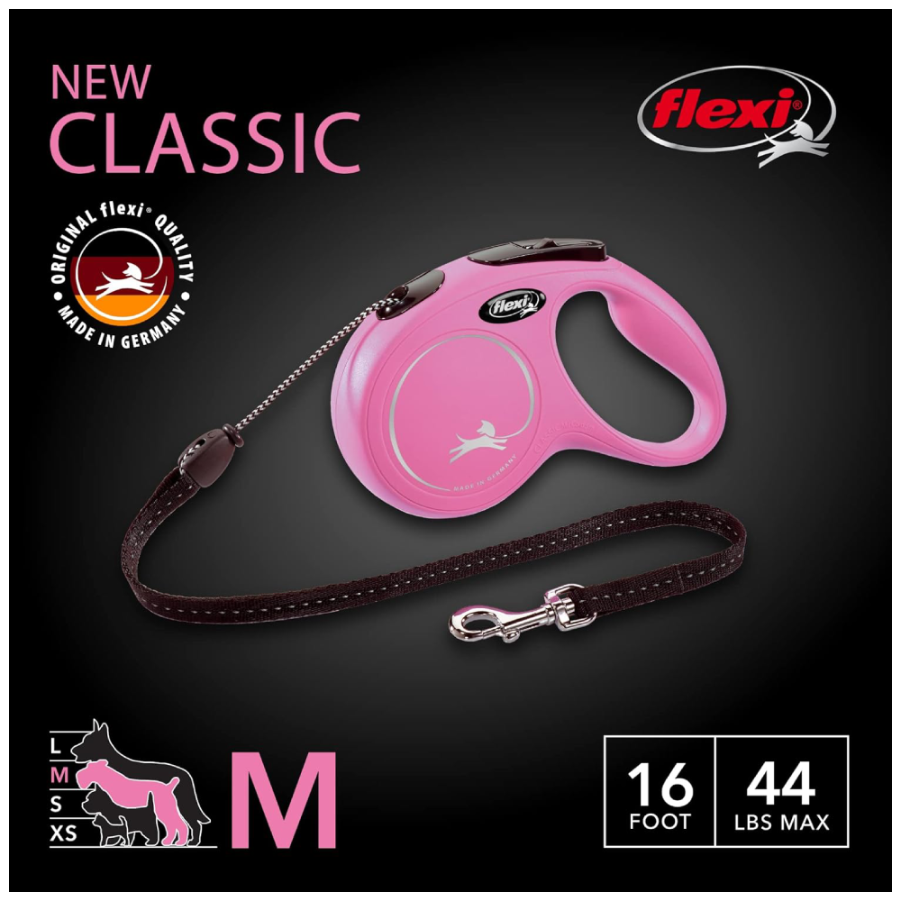 Flexi New Classic Retractable Dog Leash (Cord), 16 ft, Medium, Pink