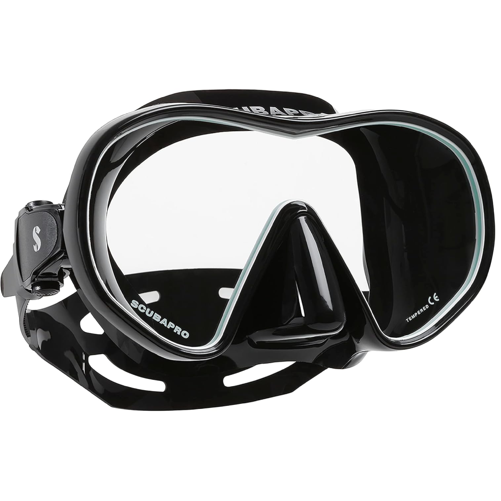 - Single Lens Design: Low volume, frameless scuba mask with tempered glass lens delivers an expansive field of view.